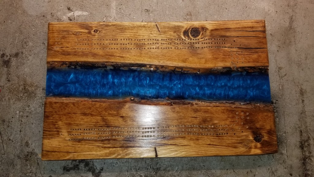 One of my inspirations to get into woodworking was a home reno show that showed how to build a ‘river table’ with epoxy resin. My earliest projects included ‘river boards’ using spruce planks that were otherwise destined for the firepit. This one here is board #1.