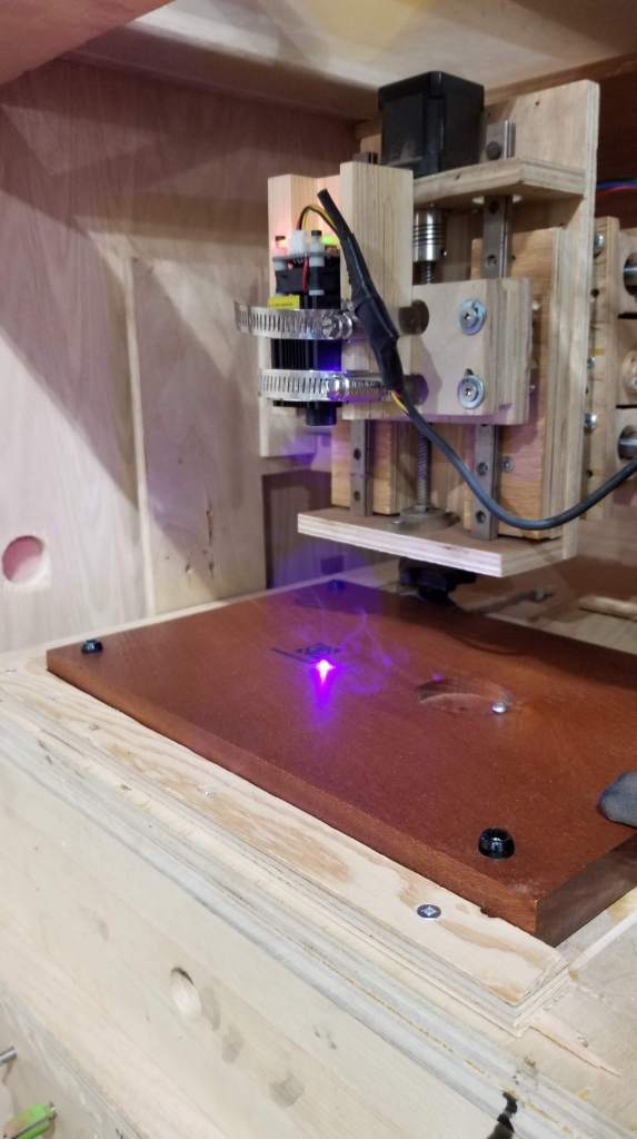 Not only can the CNC do routing work but the laser attachment opens up so many possibilities and designs. Here you see it burning my logo into the back of a cribbage board.